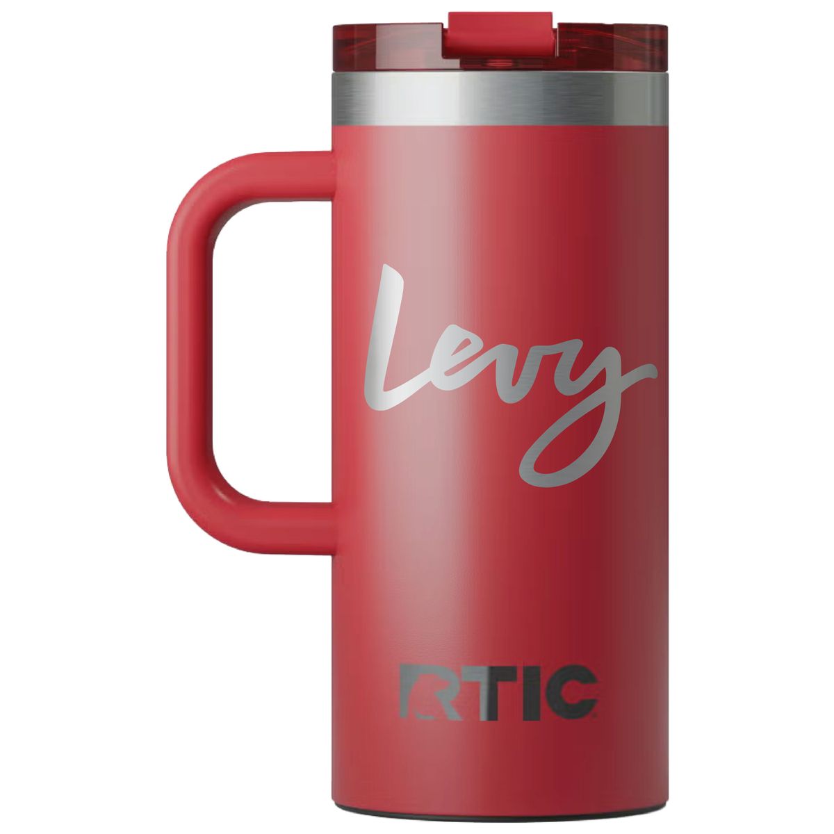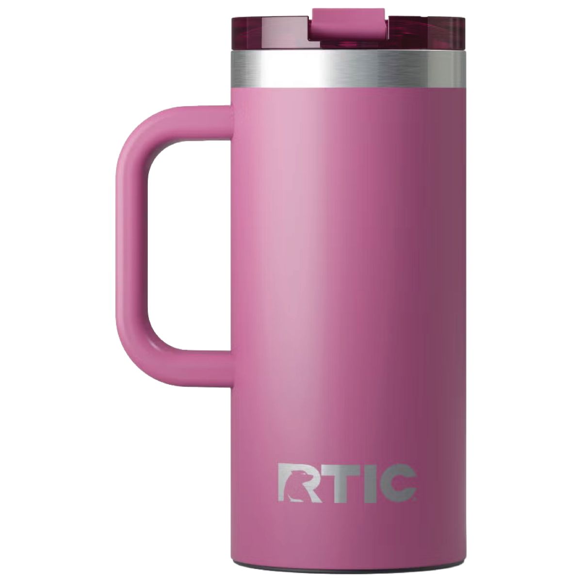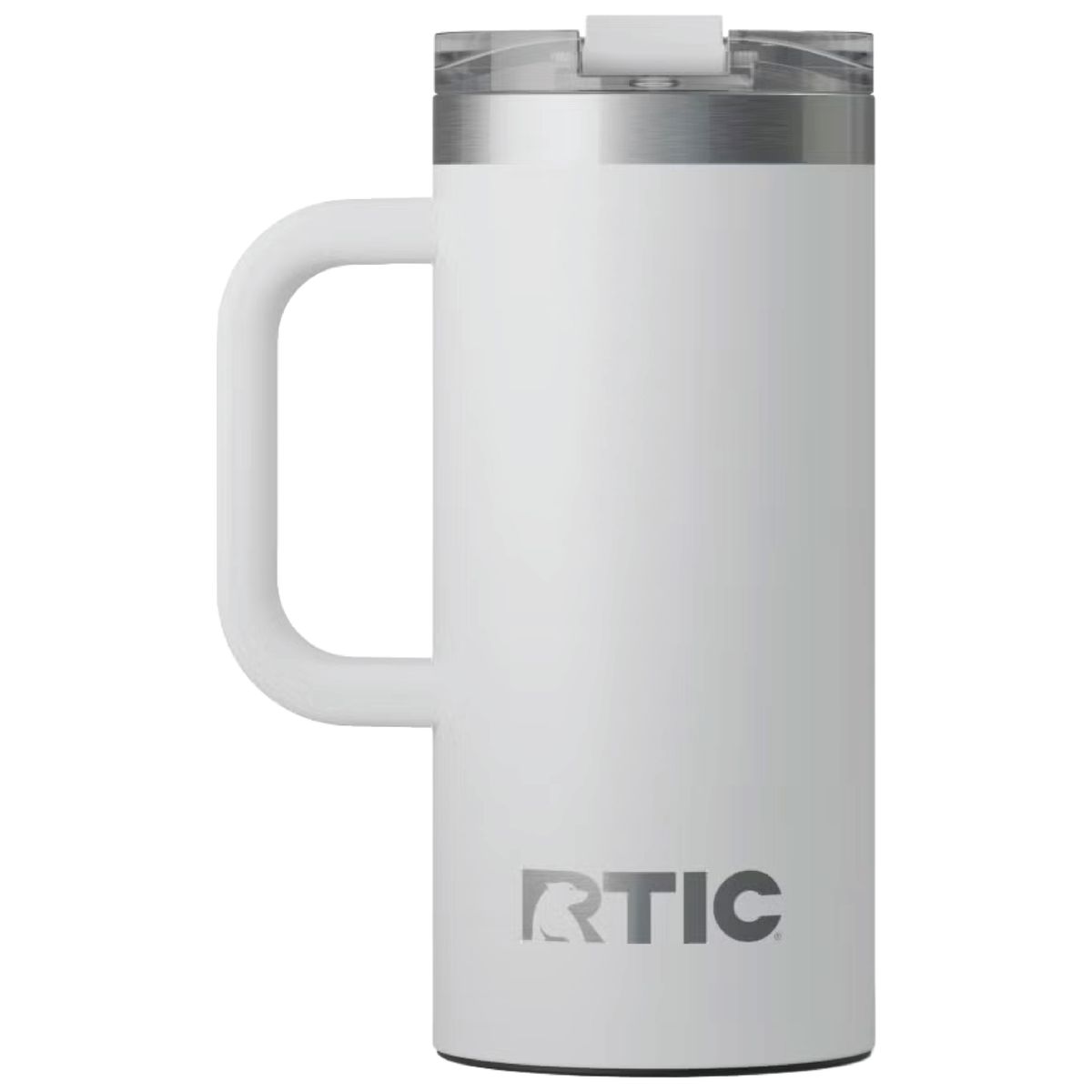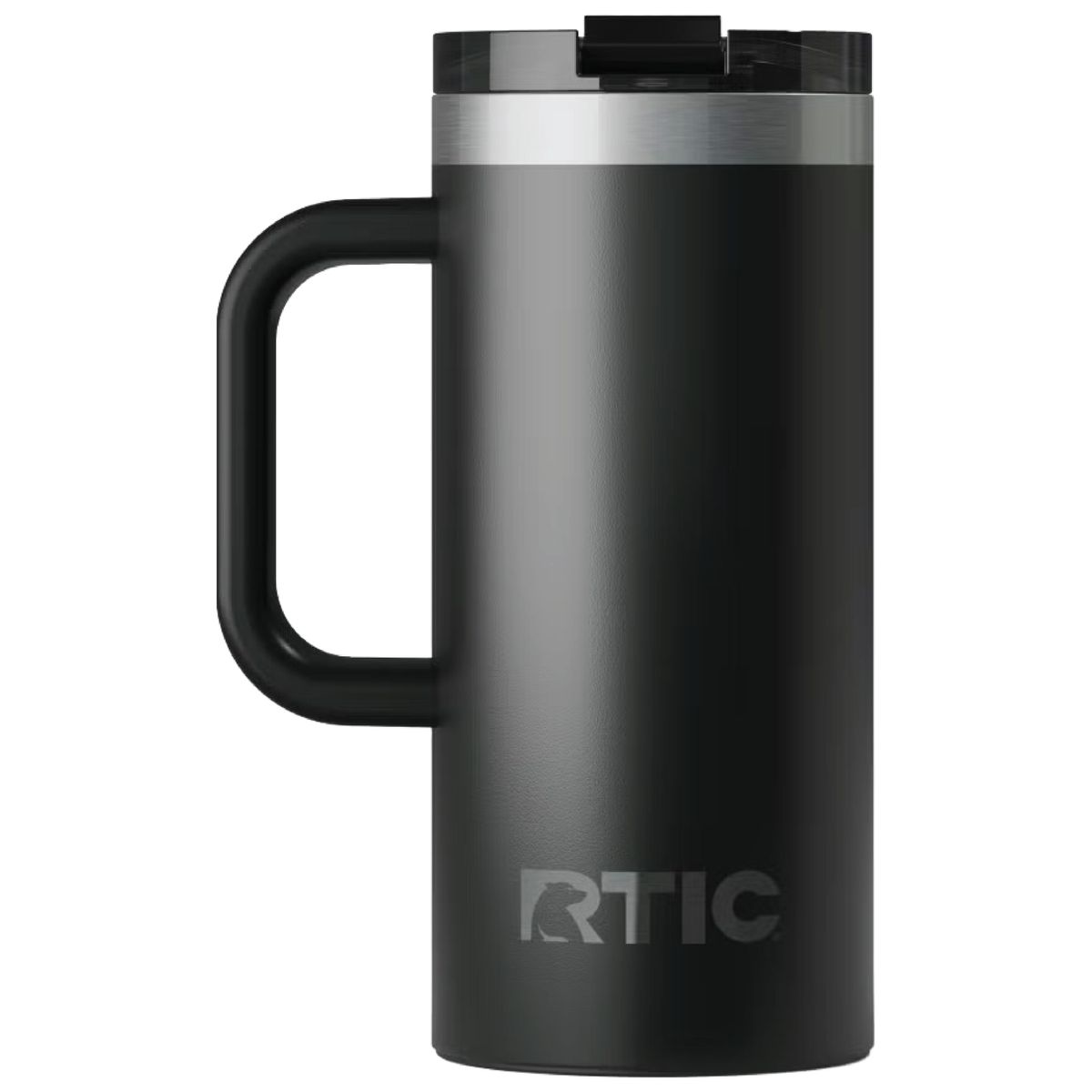 Get a grip on your next branded giveaway with this heavy duty travel mug from RTIC. Made of double-wall insulated stainless steel, this 16 ounce capacity mug will maintain the temperature of hot drinks for up to six hours or refreshingly cold for as long as 24. Design features include a secure, screw on flip-top lid and a wide handle. Ceramic lining protects against metallic taste and odor. Laser engraved leaving an elegant silver, stainless steel show-through imprint.