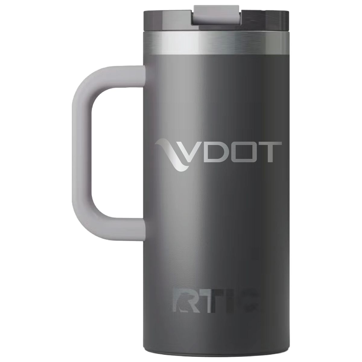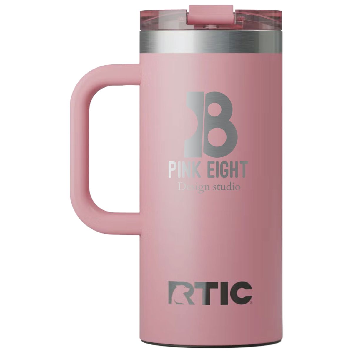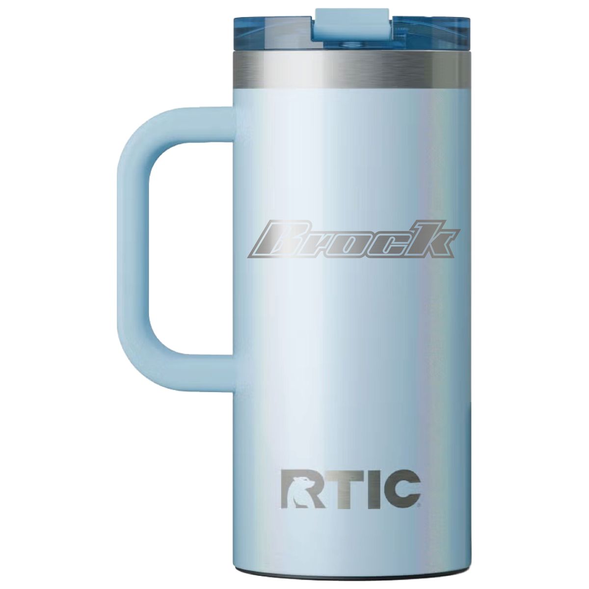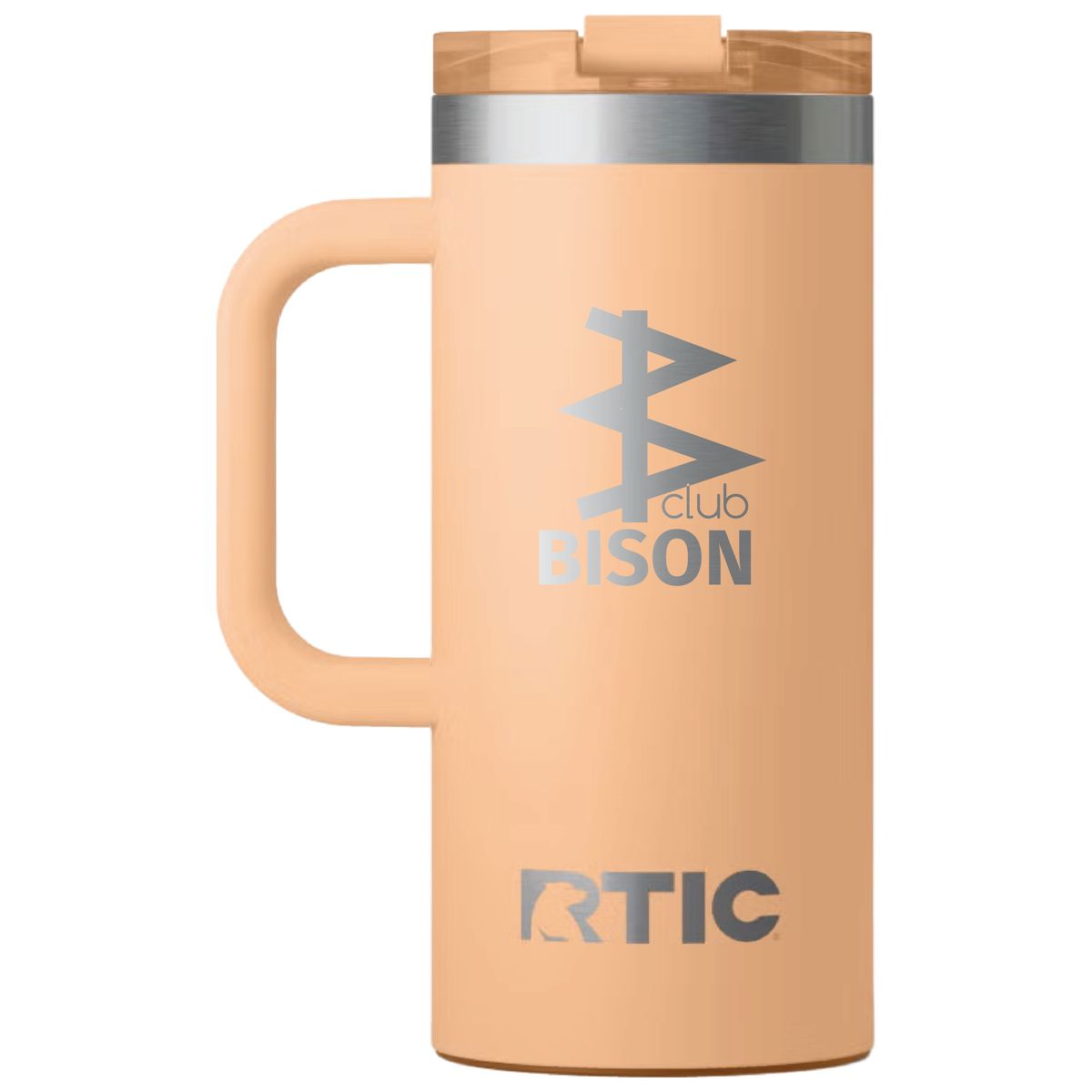 Get a grip on your next branded giveaway with this heavy duty travel mug from RTIC. Made of double-wall insulated stainless steel, this 16 ounce capacity mug will maintain the temperature of hot drinks for up to six hours or refreshingly cold for as long as 24. Design features include a secure, screw on flip-top lid and a wide handle. Ceramic lining protects against metallic taste and odor. Laser engraved leaving an elegant silver, stainless steel show-through imprint.