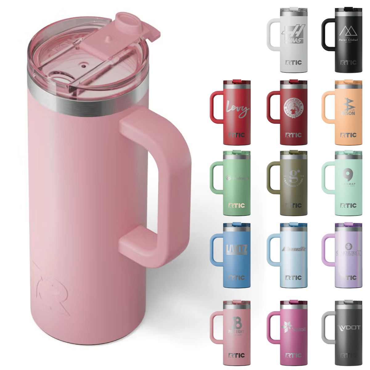 Additional InformationRTIC double-wall stainless steel, ceramic lined 16 ounce travel mug with flip-top lid and handle.